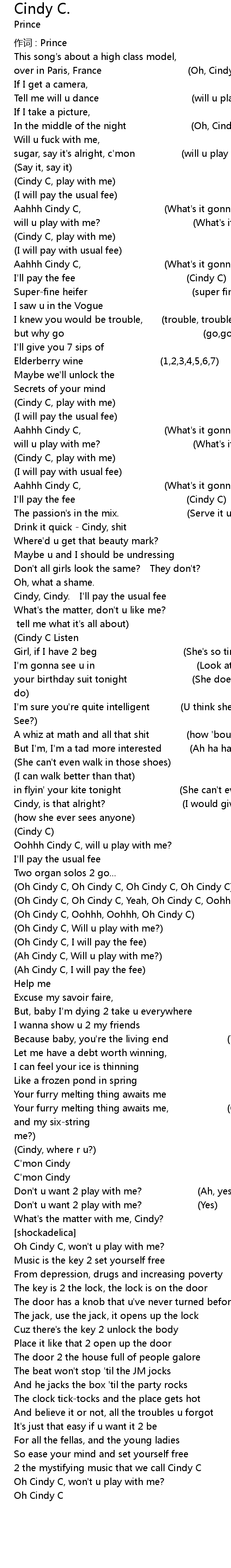 | (Oh Cindy C, Will u play with me?) | |