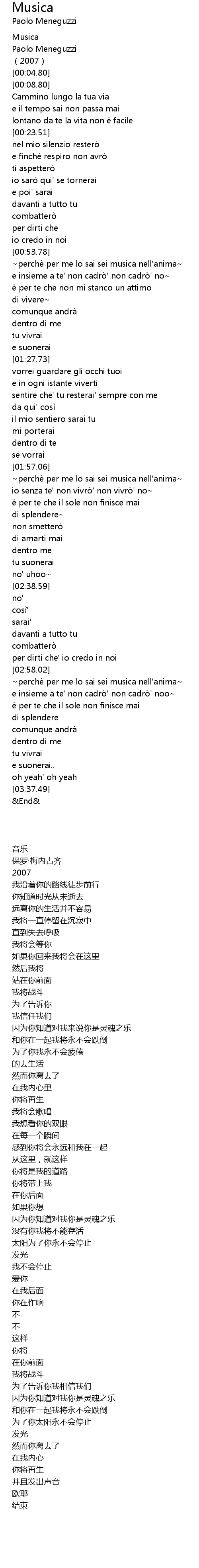 | [02:58.50] | perche per me lo sai sei musica nell' anima |
