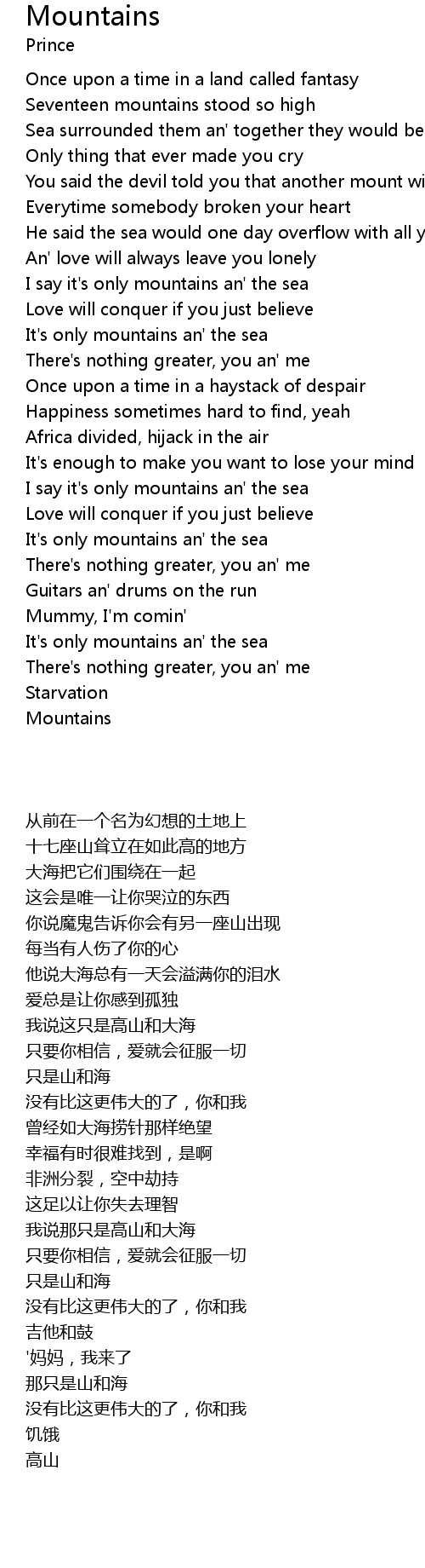 I say it's only mountains an' the sea |