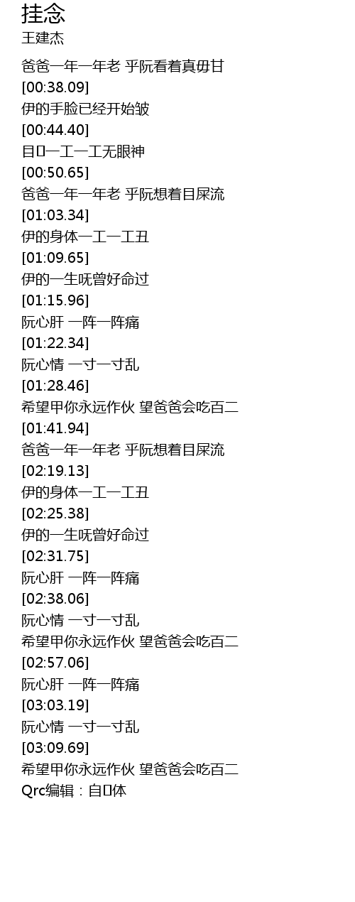 | [01:29.40] | 希望甲你永远作伙 望爸爸会吃百二 |