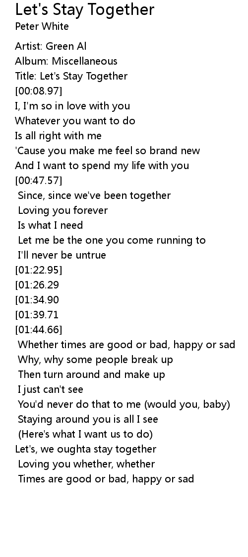 Let's, let's stay together |