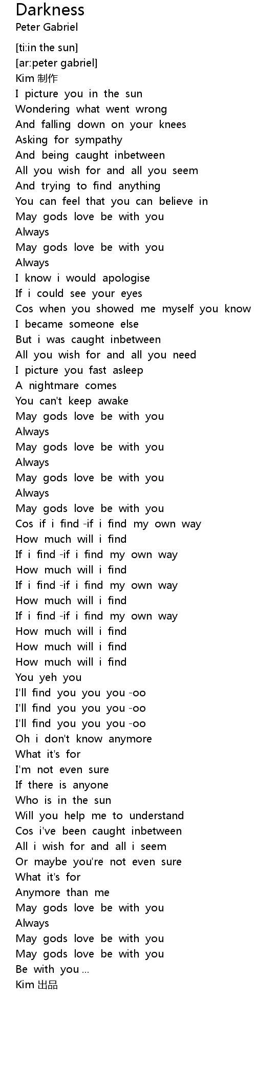 | [04:09.02] | May gods love be with you |