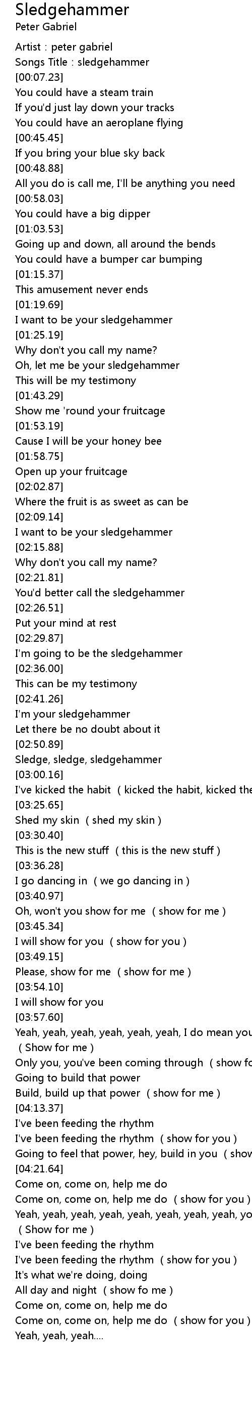 | [02:43.00] | I' m your sledgehammer |
