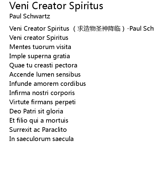 | [00:00.00] | Veni Creator Spiritus qiu zao wu sheng shen jiang lin Paul Schwartz |