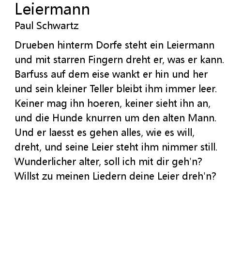 | Drueben hinterm Dorfe steht ein Leiermann | |