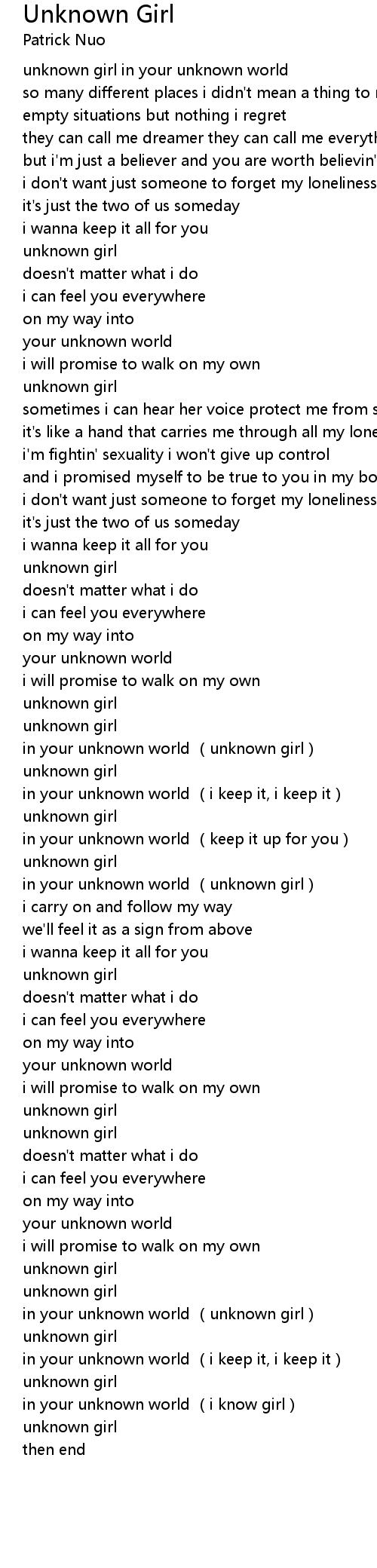 | [01:47.71] | in your unknown world unknown girl |