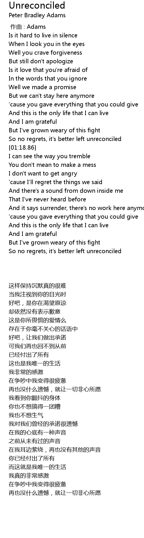| [01:08.55] | So no regrets, it's better left unreconciled |