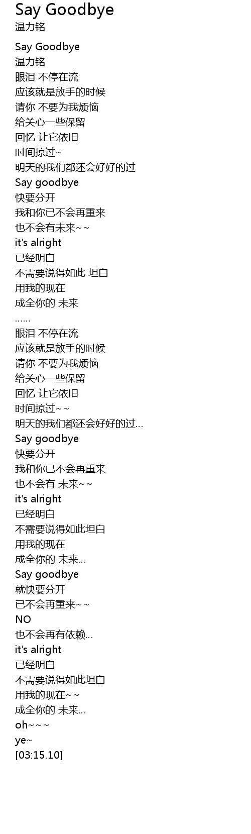 | [00:04.10] | Say Goodbye |