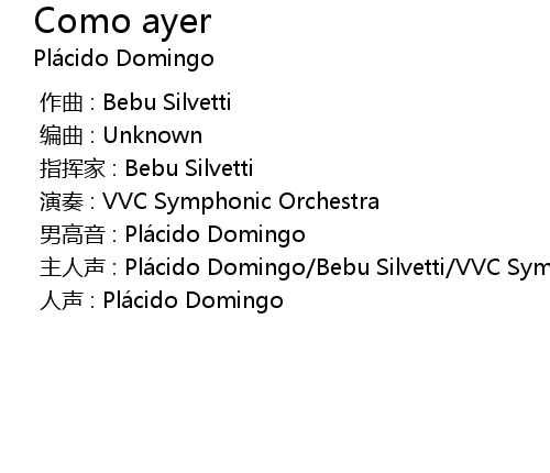 | [00:00.000] | zhǔ rén shēng : Plá cido Domingo Bebu Silvetti VVC Symphonic Orchestra |