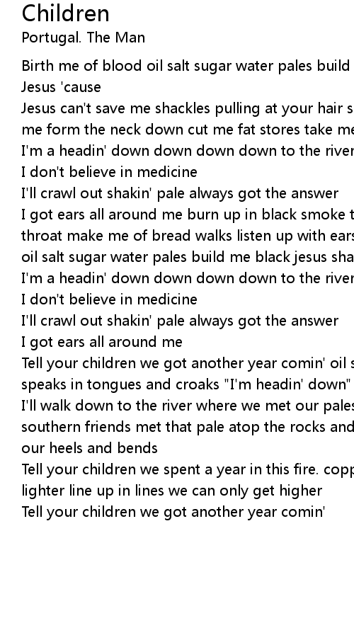 Tell your children we got another year comin' oil stands the legs this body speaks in tongues and croaks "I'm headin' down" |