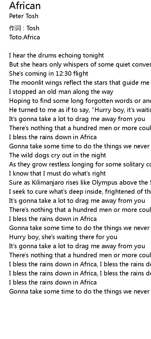 | I bless the rains down in Africa, I bless the rains down in Africa | |