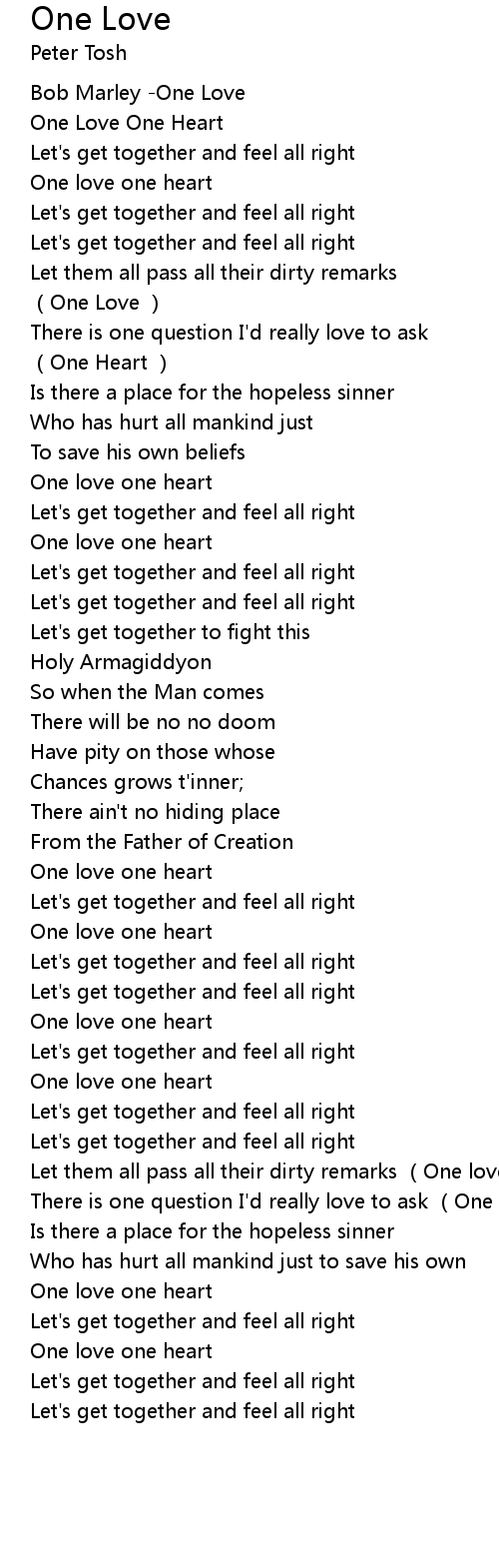 | [02:31.649] | Let them all pass all their dirty remarks (One love) |