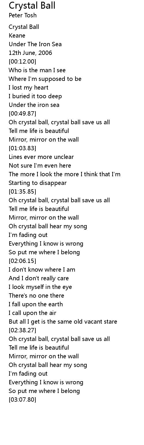Oh crystal ball hear my song |