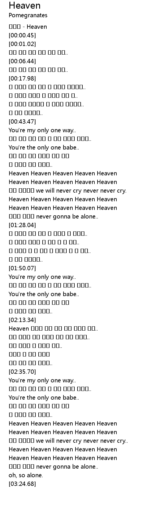 | [02:58.72] | Heaven Heaven Heaven Heaven Heaven |