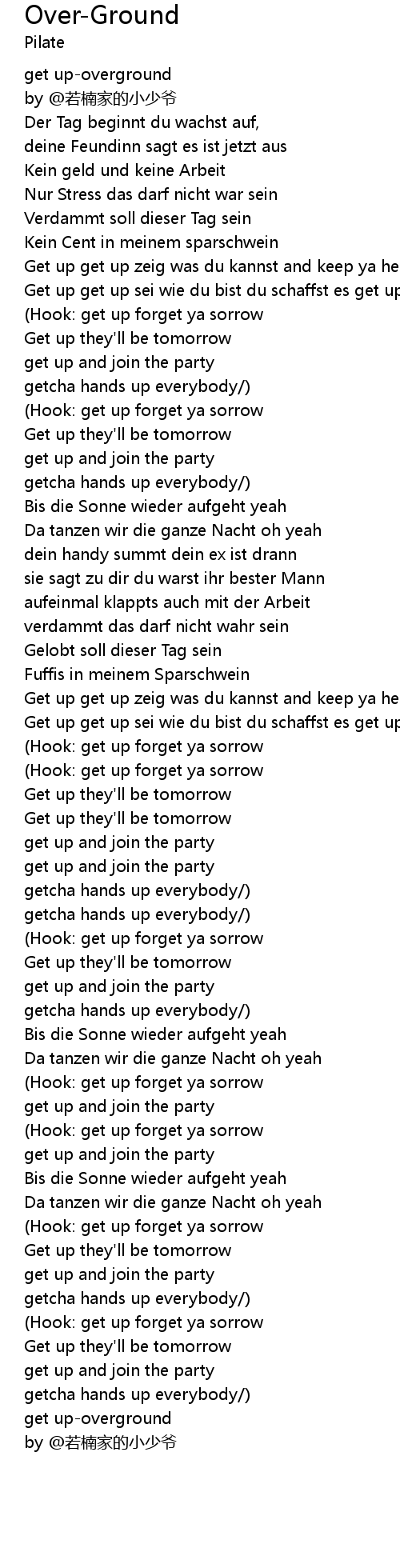 | [00:32.36] | Get up get up zeig was du kannst and keep ya head up |