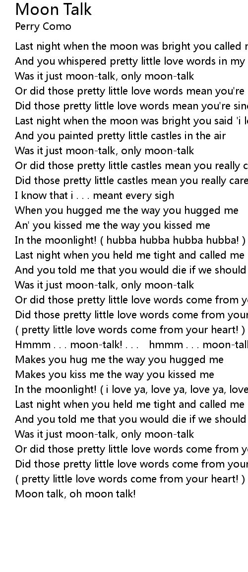 | Hmmm . . . moon-talk! . . . hmmm . . . moon-talk! . . . | |