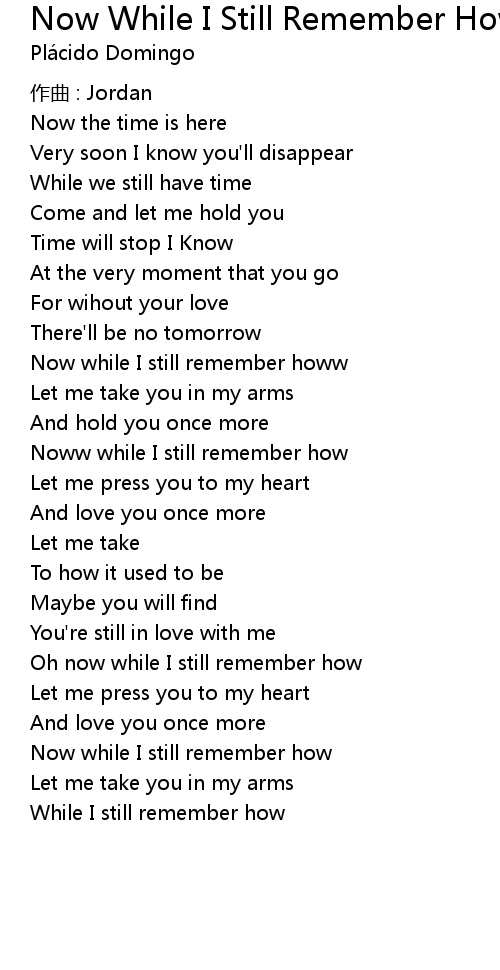 | 歌曲 | Now While I Still Remember How |