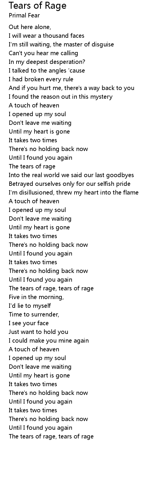 The tears of rage, tears of rage |