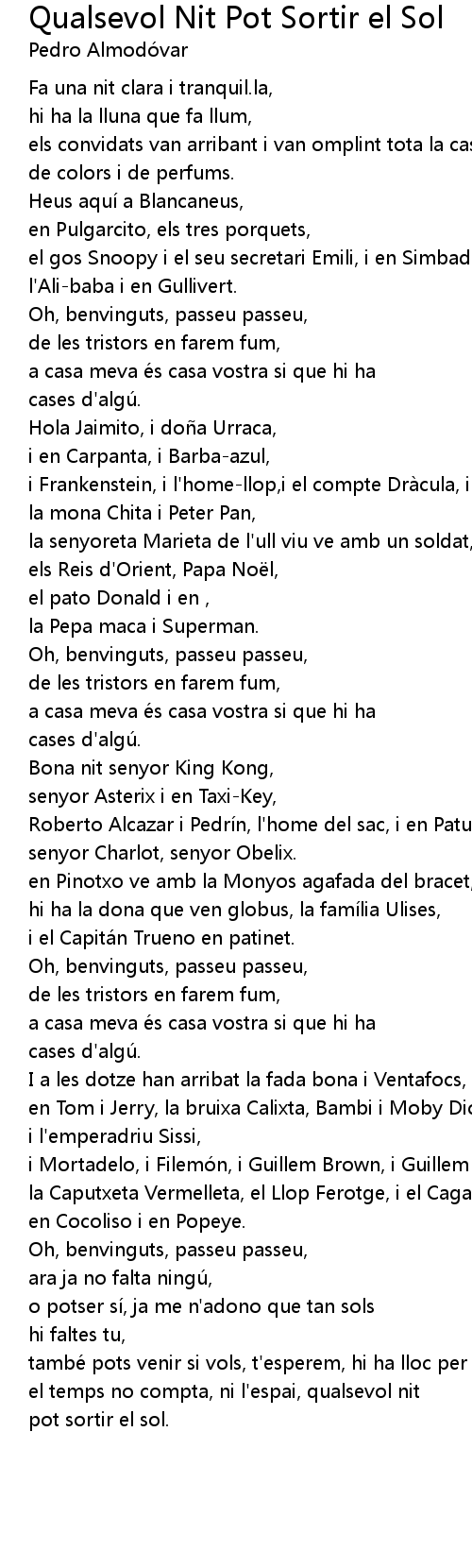 | 歌曲 | Qualsevol Nit Pot Sortir el Sol |