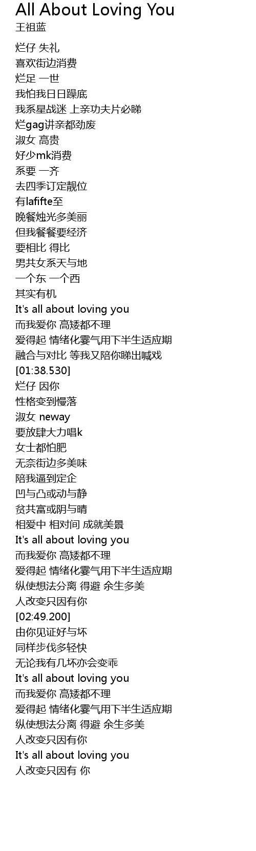 | [02:19.700] | It's all about loving you |