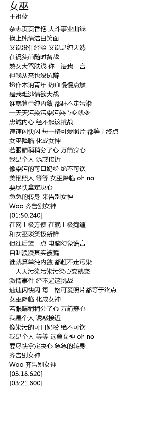 | [02:40.170] | 女巫降临 化成女神 |