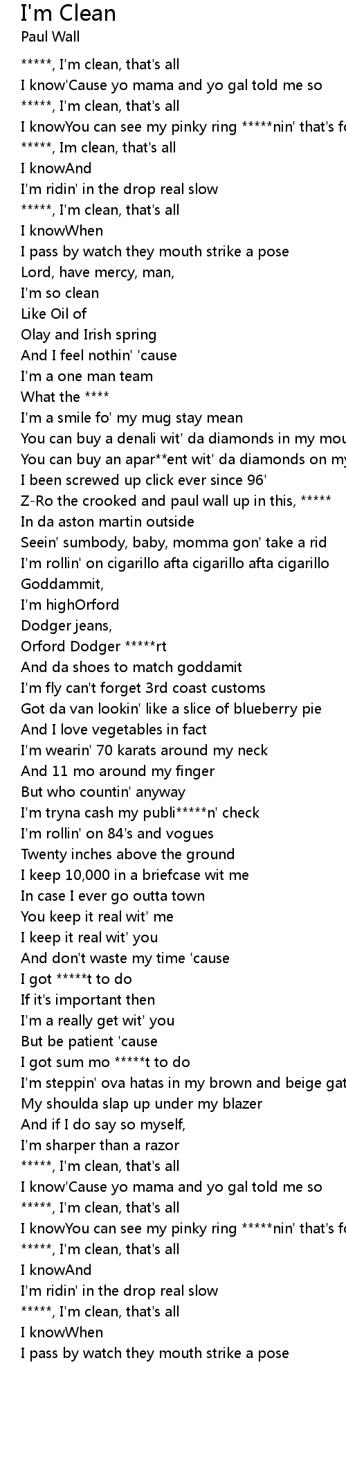| *****, Im clean, that's all | |