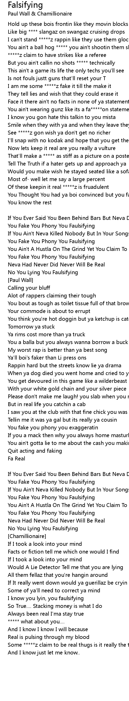 I know you lyin, you faulsifying |