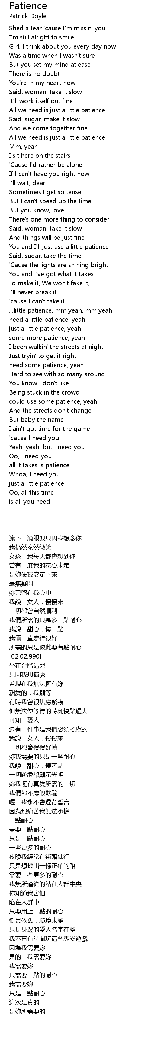 need a little patience, yeah |