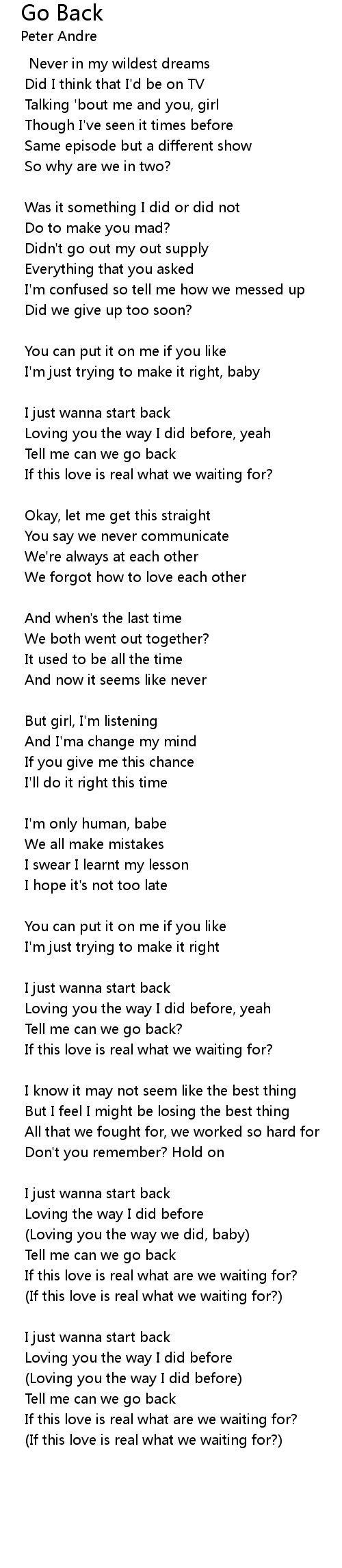 Tell me can we go back |