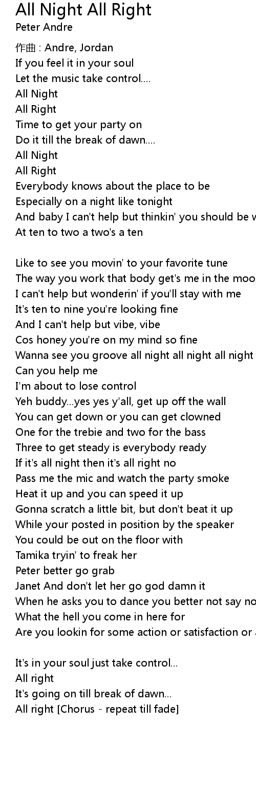 | 歌曲 | All Night All Right |
