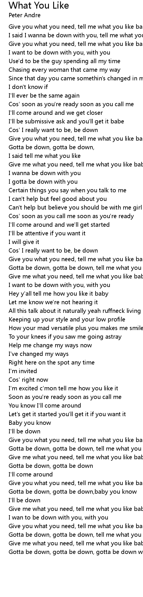 Gotta be down, gotta be down, tell me what you like |