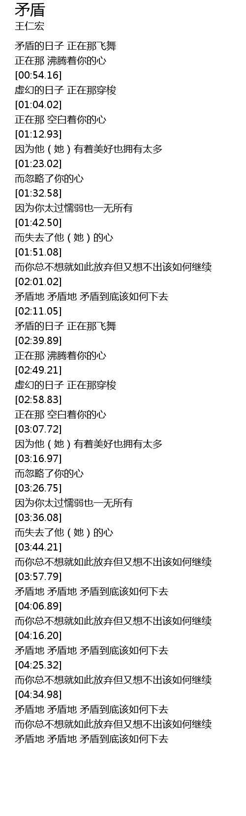 | [04:54.16] | 矛盾地 矛盾地 矛盾到底该如何下去 |