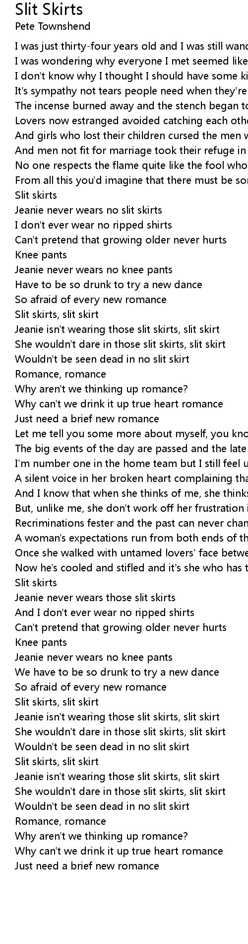 Jeanie isn't wearing those slit skirts, slit skirt |