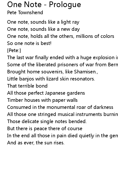 歌曲 One Note - Prologue