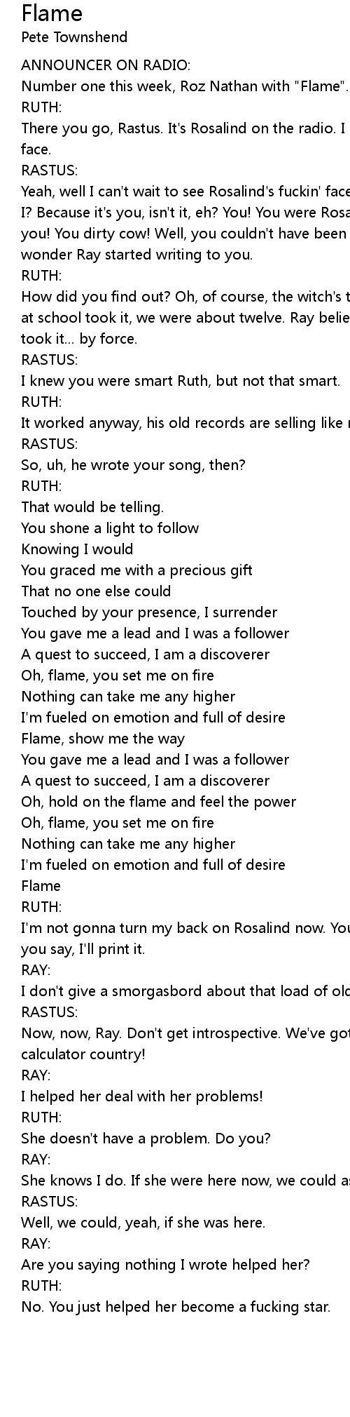 Oh, flame, you set me on fire