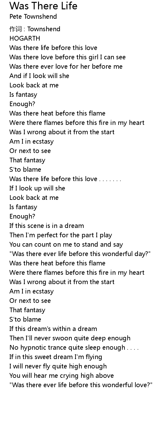 | 歌曲 | Was There Life |
