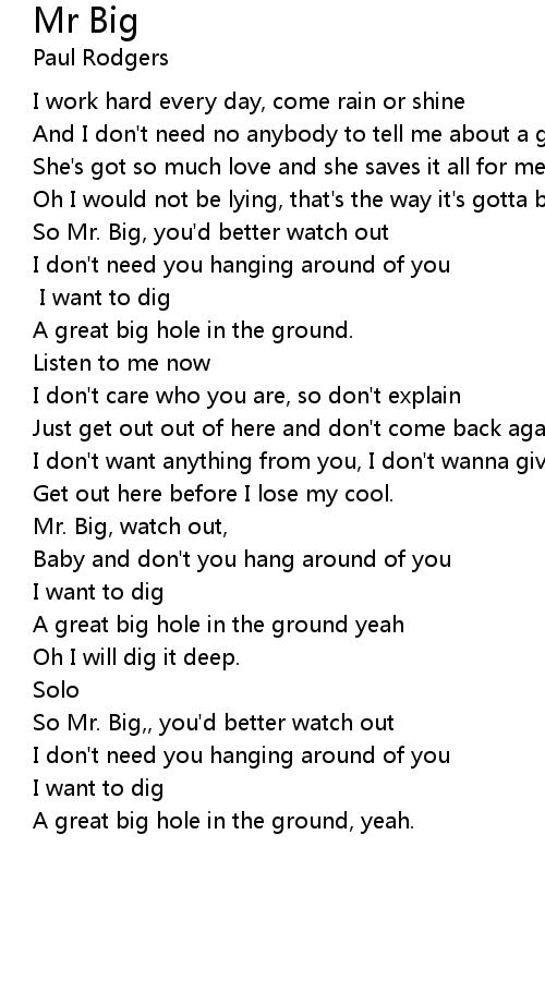Mr. Big, watch out, |