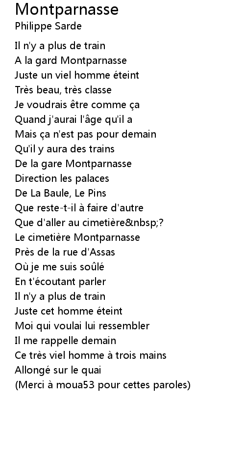 | 歌曲 | Montparnasse |