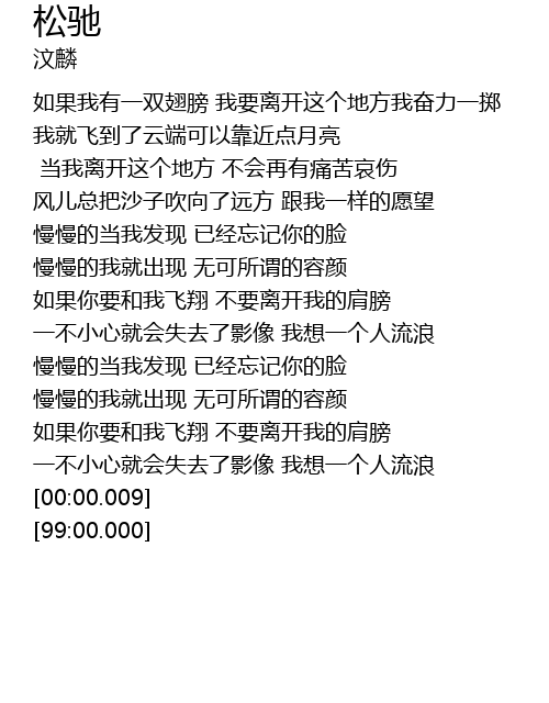 | [03:17.42] | 一不小心就会失去了影像 我想一个人流浪 |
