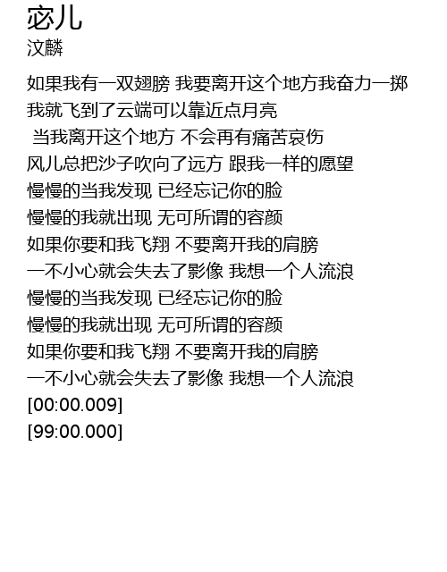 | [01:58.96] | 一不小心就会失去了影像 我想一个人流浪 |
