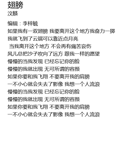| [01:45.06] | rú guǒ nǐ yào hé wǒ fēi xiáng bú yào lí kāi wǒ de jiān bǎng |