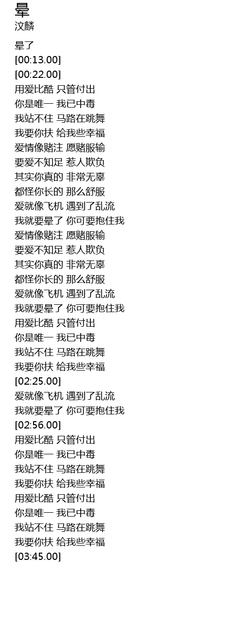 | [00:00.00] | 晕了 |