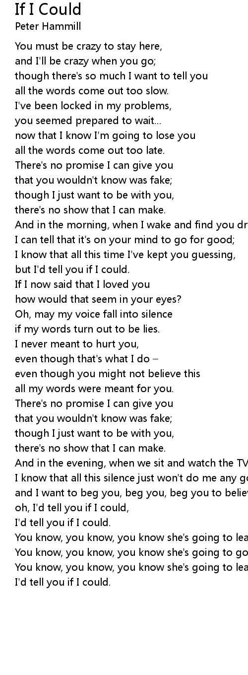 | and I'll be crazy when you go; | |