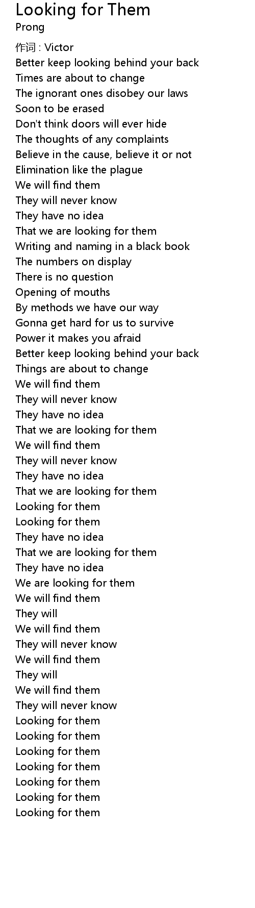 | 歌曲 | Looking for Them |