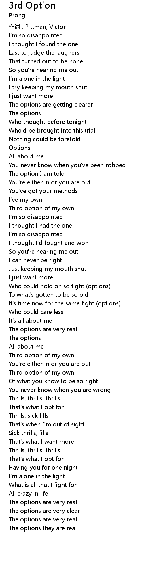 | 歌曲 | 3rd Option |