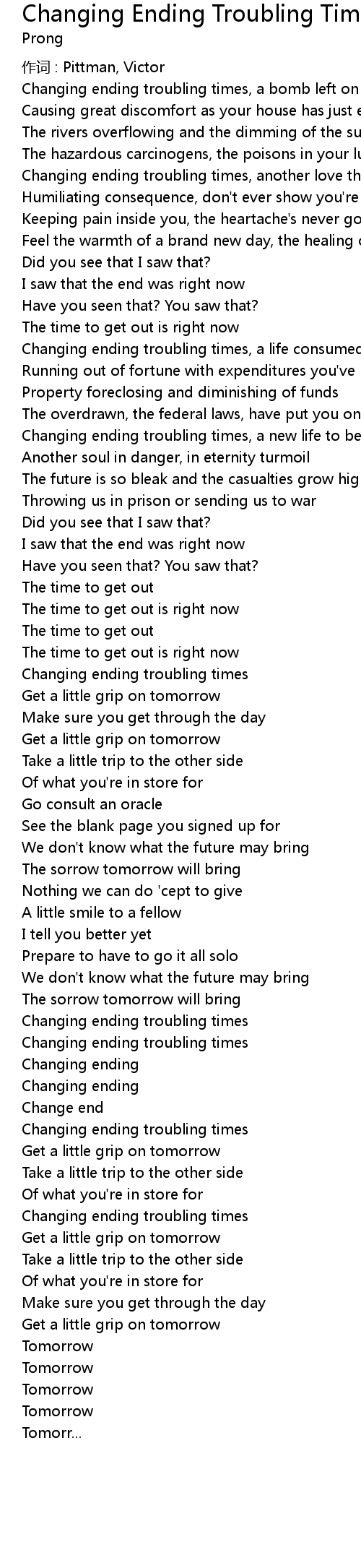 | 歌曲 | Changing Ending Troubling Times |