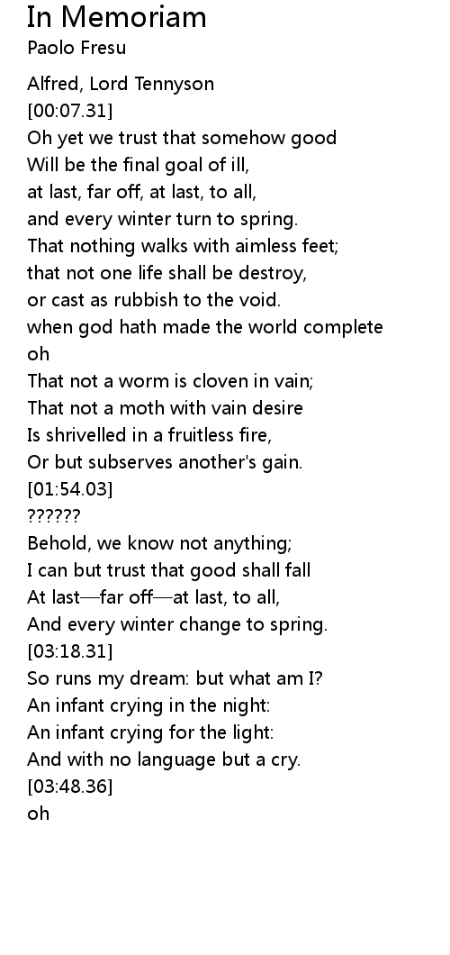 | [00:07.30] | Alfred, Lord Tennyson |