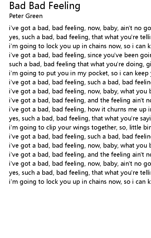 i've got a bad, bad feeling, such a bad, bad feeling |