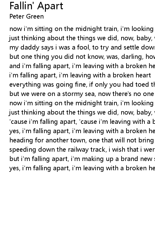 'cause i'm falling apart, 'cause i'm leaving with a broken heart |