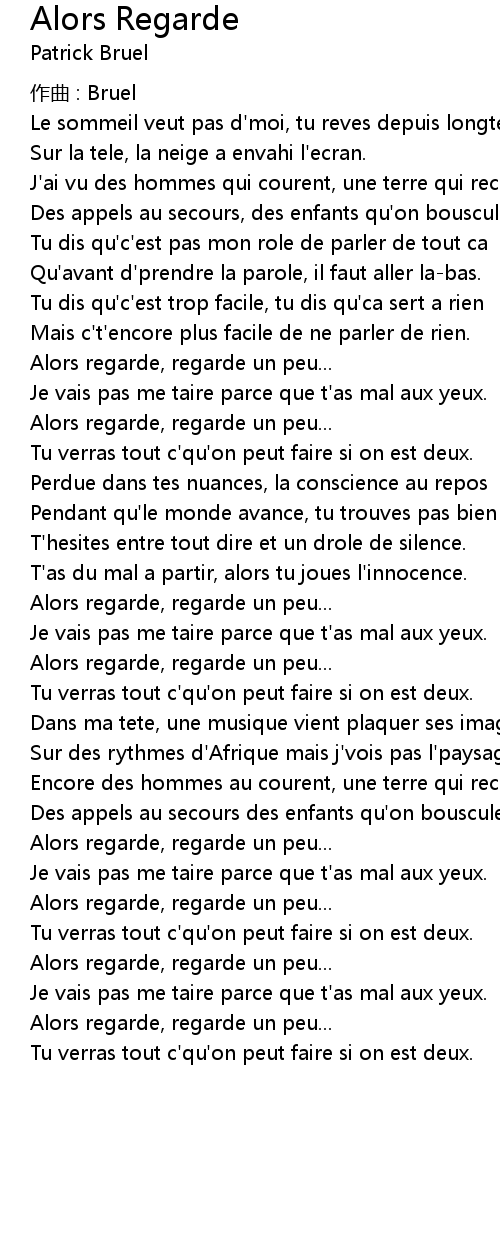 | 歌曲 | Alors Regarde |